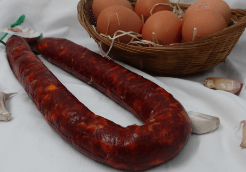 Elaborado de forma tradicional a partir de carnes selectas de pollo y pavo, y a base de especias naturales. Embutido en tripa natural de cerdo.